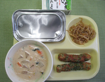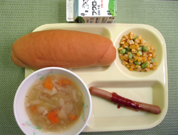 ロールパン 牛乳 ウインナーソーセージ コーンソテー ベジタブルスープ