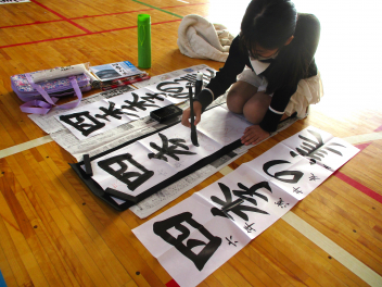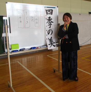 4年生は、「水の流れ」、6年生は、「四季の美」という文字を書きました。