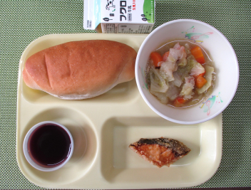 パン 牛乳 フライサーモン ポトフ ぶどうゼリー