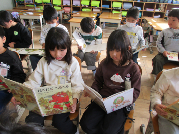 後半は、子供たち一人一人が興味をもった本を手にして読んでいる様子が見られました。