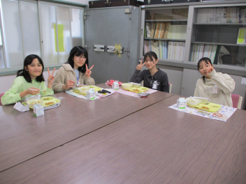 6年生との会食では、「修学旅行で、友達とホテルで楽しく過ごせたことが心に残っている。」「中学校では、英語や数学が難しくなるから、頑張りたい」といった話が聞かれました。