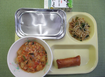 今日の給食のメニューでは、春巻きの皮がパリッとしていて、とてもおいしかったsmileyです。