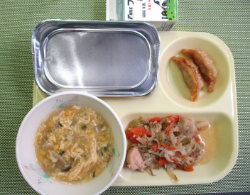 ごはん 牛乳 鶏肉と野菜の中華炒め 揚げ餃子 スーミータン