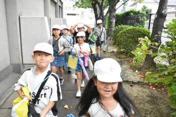 今日は、ニコニコ餅さんと明善寺さんのグループが出掛けました。子供たちは、わくわくsadした気持ちで出掛けました。