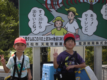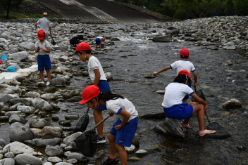 昨日3・4年生は、総合的な学習の時間の一環として、佐久間小近くの天竜川河川敷に行きました。