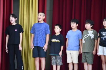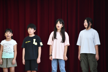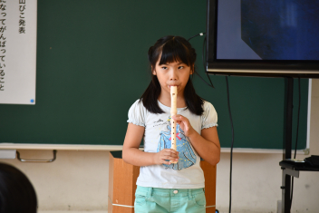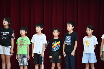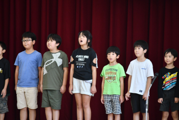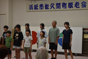 全校で「ふるさと」「佐久間小校歌」を発表しました。