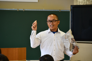 今回は、環境学習指導員の野澤さんを講師に招き、天竜川に生息する水生生物と水質の関係を学びました。