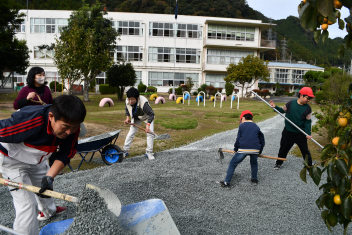 運動場周辺の砕石敷2年計画がほぼ終了しましたwink