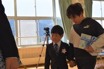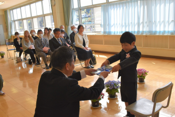 修了式が行われ、校長先生から子供たち一人一人に修了証書が手渡されました。