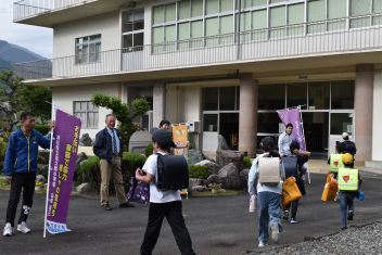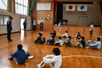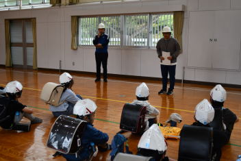 •  本日、佐久間小学校第1回避難訓練(引き渡し訓練)が実施されました。今回は、南海トラフ地震に関連する「臨時に関する情報」発令時に、適切な行動がとれるようにするための訓練です。新しい年度となって1年生も入学し、教室の場所も変わったため、児童は事前に教室からの避難方法や避難経路を確認しました。また防災ノートを使って安全に素早く避難する合言葉「おはしも」(おさない・はしらない・しゃべらない・もどらない)や、命を守るための行動についても改めて確認しました。