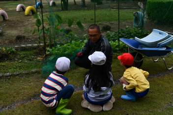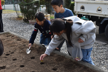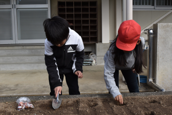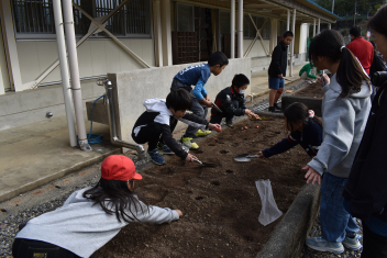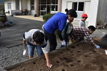 • 今朝全校で校舎前にある花壇にチューリップの球根を植えました
