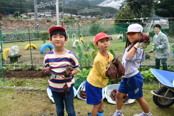 3人で力を合わせてたくさんのサツマイモを掘りましたcheeky