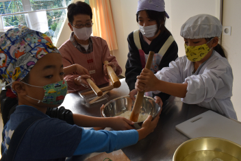 •  昨日、全校で「五平もち作り体験」を行いました。