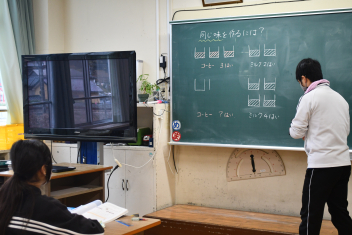 さて、同じ味でもっとたくさん作りたいとき、ミルクを4杯にしたらコーヒーは何杯にしたらいいのかな?それぞれの考えを説明し合います。