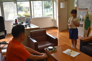 6年生が代表して受け取り、その後、全児童へ配布しました。