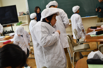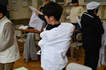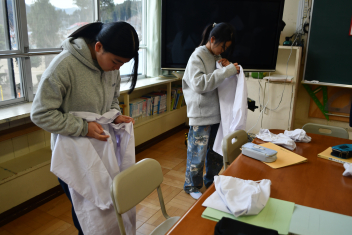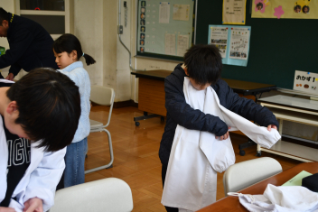 毎日給食で使っている白衣の着方やたたみかたを再確認しましたsmiley