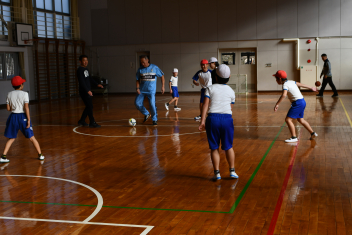 いつものようにサッカーを真剣に楽しむみんなと、その横でドッチボールを楽しむ1年生~3年生。
