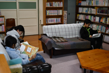 図書室にもエアコンが設置され、暖かい環境の中、それぞれ読みたい本、読みたい場所を選んで、読書に没頭していましたcheeky