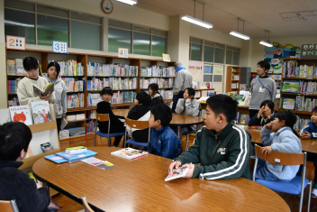 いつもは各学級で15分間読書をしていますが、今日は「アイ読書委員会」の提案で、図書室で全員が集まって全校読書を行いましたwinkはじめに委員会から、おすすめの本の紹介がありましたfrown