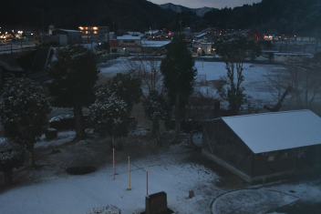 昨夜からの雪で今朝は校庭が雪景色
