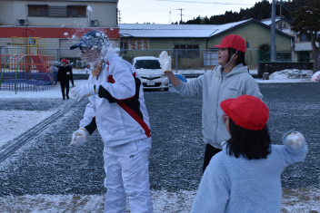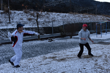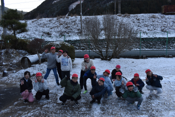 登校後、今日の朝活動は雪遊びになりましたsmiley