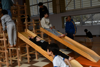 体育館には来場者、子供たち、職員を合わせて約120人集まりました