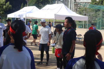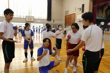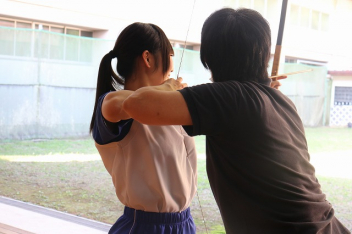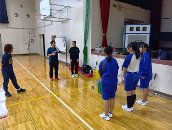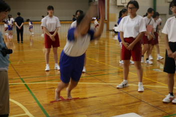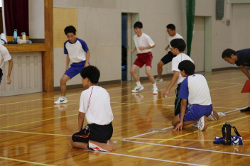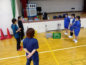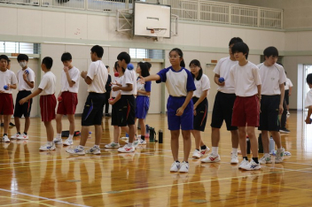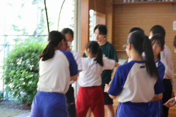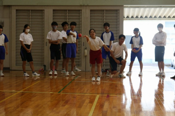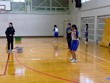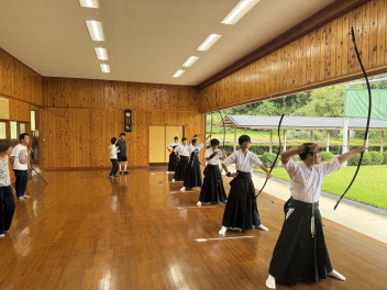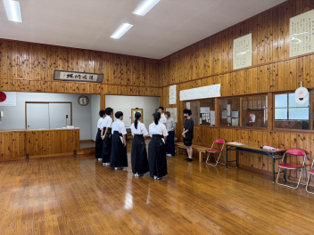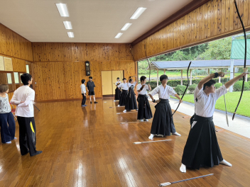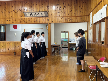 来年9月の「休日部活動の地域展開」に向け、試行期間の1年です。先週は、ソフトテニス、弓道の2種目をクラブで実施しました。所属部の部員と顧問に地域の指導者が加わり、申し込みがあった一般参加者も入って活動しました。(所属部とは違う種目に中学3年生と卒業生の社会人OGが参加しました。)テニスはあいにくの雨模様のため、体育館で実施。2時間しっかり指導してもらいました。弓道は、平日夜間の練習会で同じ顔触れで練習していることもあり、顔なじみの指導陣の指導の下、地域の弓道場(瞑想館)で練習しました。陸上は11日(土)に初めてのクラブでの活動が行われます。