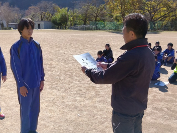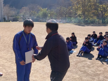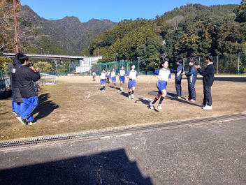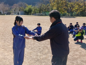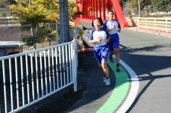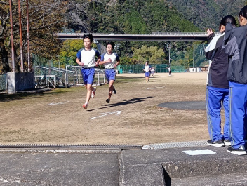 • 今年は分校が3年に1度の30km競歩の年だったので、中学校単独のマラソン大会となりました。佐久間中学校~JR中部天竜駅~吊り橋前までの折り返し区間、女子は3.2km、男子は3.4kmで競い合いました。雲なし風なしの絶好のコンディションの中、全員が練習を上回り自己記録を更新することができました。