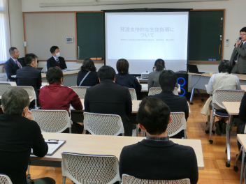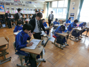 • 佐水中高一貫教育協議会の研修会で、佐久間中学校の授業参観がありました。水窪中の先生も合流して、本年度最後の研修会でした。1年生の英語、2年生の保健体育、3年生の数学の授業を参観してもらいました。生徒数の3倍の先生に囲まれた中の授業でしたが、生徒は、言いたいことを言い、周りにいる先生に聞き、いつもと変わらない様子で授業をしていました。授業参観後は、研究協議。中高一貫で目指したい生徒像について、教科ごとに意見交換しました。静岡県立の高校と浜松市立の中学が同居する、全国でも珍しい学校です。貴重な意見交換の場となりました。