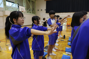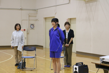 • 教員研修の一環で、本校の内山美代子先生の授業を参観に、浜名中学校の太田友美先生が来校しました。朝から夕方まで1日密着し、授業の様子を参観したりときには一緒に活動したり、保健体育の授業について研修していきました。美代子先生の保健体育の授業は市内でも有名で、若い先生のよいお手本です。そんな授業を日々受けられる佐中の生徒は幸せですね。