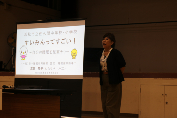 • 佐久間小学校の5,6年生も合流した学校保健委員会がありました。今年のテーマは「睡眠」です。東洋羽毛の睡眠健康指導士・渡辺郁子先生を講師にお迎えしました。日本人の6割が「日中、眠い」と感じていること、日本人の平均睡眠時間は7時間22分で先進国では最下位であることなどを知りました。睡眠と学力には関係があることは有名な話ですが、MLBの大谷選手は何よりも「よい睡眠」を心がけているというのも最近ではよく聞く話です。よく運動(遊び)し、よく食べ、よく寝る。それが成績アップにつながることを覚えておきましょう。でも、その3つを守っていても、勉強しないと成績は上がりませんよ。。。