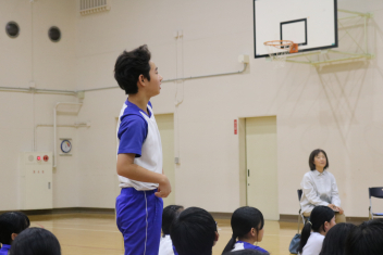 • 毎年恒例の食育授業がありました。光明小学校から栄養教諭の小林先生を講師にお迎えし、1年生が「朝食の大切さ」を学びました。学力検査の結果、新体力テストの結果が朝食と関係していることを科学的データで示していただきました。最後は、自分の朝食メニューを振り返り、「朝から野菜を食べたい」「ごはんに納豆か卵を付け加えたい」など、自分の改善点について整理し発表し合いました。小林先生、毎年ありがとうございます。次回もよろしくお願いします。