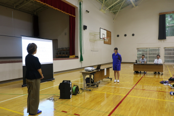 鈴木千晶指導主事からは、「全職員が全生徒と関わりがあり、いい雰囲気の学校ですね」とのお言葉をいただきました。21名の生徒を21名の職員と地域の皆さんで見守る佐久間中学校ですから!