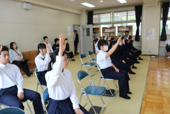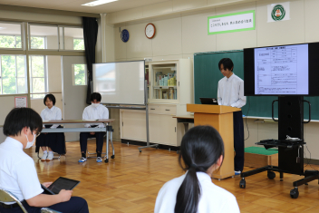 静岡文化芸術大学で過疎地域の研究をしている舩戸修一先生による「地域学講座」がありました。ST(総合的な学習)の個別探究テーマを決める材料として、佐久間地域の特長(優れた点)についての講義を毎年していただいています。毎回、50分では語り尽くせない佐久間の持つポテンシャルについて、熱く語ってくださいます。中学1年生には少し難しい話もあったと思いますが、1年生は1年後のテーマ設定に向けて、いくつかのキーワードが心に残ればよいと思います。2、3年生は具体的なテーマ設定の材料がいくつかあったことと思います。この3月に三遠南信道路も引佐から佐久間まで貫通し、浜名湖から30分で佐久間まで来ることができるようになりました。佐久間ダム電力館の入館者数は、道路開通後、それまでの4倍になったそうです。また、日本一の発電量を誇る佐久間ダムは、10年かけてタービンをすべて交換する工事に入りました。個別探究テーマも昨年までとひと味違ったものが出てくるとおもしろいですね。