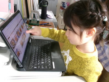 「ハガキ、どうやってつくったの?」と聞かれ、やったことを思い出しながら、伝えていました。