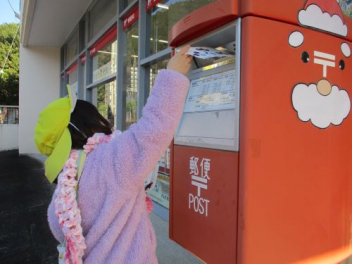 移動環境教室の紙すきでつくったハガキができあがり、年賀状を書きました。