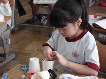 3~6年生は、合同で特別な理科の活動を行いました。講師の方から、壁や天井などに使われる「しっくい」の説明を受けた後、泥団子にしっくいを薄く塗り重ね、瓶を使ってクルクルと繰り返し磨きました。すると、驚くほど表面がピカピカの泥団子になり、子供たちからは歓声が起こりました。どの子も根気強く磨き上げ、完成した特別な泥団子を見ては、満足そうな表情でした。楽しく思い出に残る活動の一つとなりました。