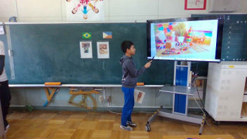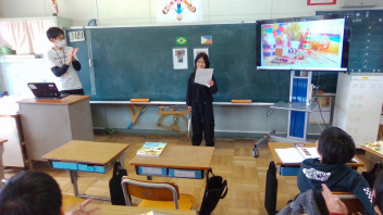 ふれあい教室で作成した「自分の国につながる工芸品」について、クラスのみんなに紹介しました。