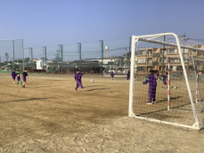 サッカーの授業で、パスからシュートの練習をしていますsmiley
