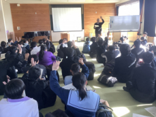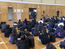 今回の学年集会では、新しい先生の自己紹介ですsad