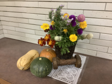 学校の階段や生徒・職員の昇降口に秋の花がきれいに咲いています wink