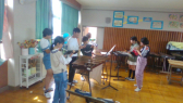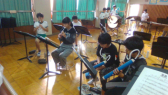• わくわくコンサートに向けて練習を行っています。合唱ではピアノを囲んで歌ったり、相手のパートを聞きながら歌ったりしています。「歌うのって楽しい」と言っている子もいました。合奏ではパートごとに一緒に練習したり、他のパートで集まって練習したりと自分に合った方法で練習をしています。「音を合わせていくのが楽しい」と前向きに取り組んでいます。