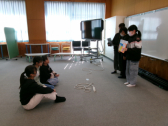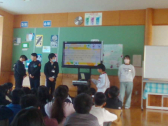 •  5年生の総合では、SDGsについての学習をしています。地球にはどんな課題があるのか、その課題に対してどんな取り組みが行われているのか、自分たちが今からできることは何か、という視点で1学期から調べてきました。調べていく中で「みんなにも知ってもらいたい!」という思いを持ち、3学期のSDGs週間に向けて準備を進めてきました。