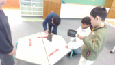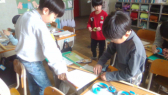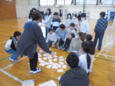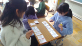 • 国語科の学習で、漢字の音と訓の両方を使った読み札を作りました。そして、完成したかるたを使って「かるた大会」を開催しました。みんなで大いに盛り上がりました。