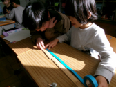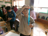 •  生活科の「あしたへジャンプ」の学習で、生まれたときの身長を家の人に聞いて調べました。 その長さを紙テープで切り、今の自分の背と比べてみると、「わあ、こんなに小さかったんだ!」と、みんなから驚きの声があがりました。ここまで育ててくれた家族の優しさに気づき、胸が温かくなったようです。 体も心も、もっともっと大きくジャンプして、素敵な3年生になりたいという思いををもつことができました。