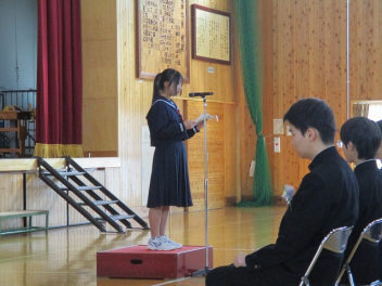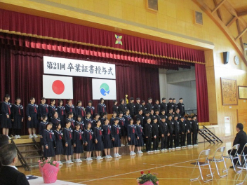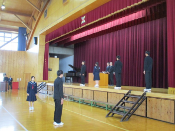 本日、64名の卒業生が住み慣れた清竜中学校を巣立ちました。式典では、校長先生から校歌の一節「知をみがき 鍛えよからだ 天翔る 龍さながらに」 を引用し、未来へ向かって力強く羽ばたいてほしいと話がありました。在校生による送辞、そして卒業生の答辞。そこには、先生方や地域の方々、そしてこれまで支えてくれた保護者の皆様への心からの感謝が溢れており、会場全体が温かな感動に包まれました。最後を締めくくったのは、卒業合唱「群青」。 たとえ離ればなれになっても、心はずっと繋がっている――。そんな強い絆を感じさせる歌声が、体育館に響き渡りました。御卒業本当におめでとうございます。 これから歩む道が、さらに大きく、素晴らしいものになりますように。私たちはいつまでも、みなさんを応援しています。