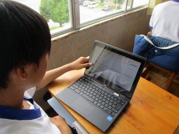 • 2年生は総合的な学習の時間に職場体験の資料作りを行っています。それぞれ体験を行う場所についてまとめられるように、スライドを準備していました。また、職場の場所や業務内容についても確認をしていました。1か月後には2日間の体験となります。職場によって求められることも異なるので、事前に準備をしていきましょう。