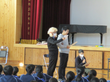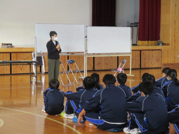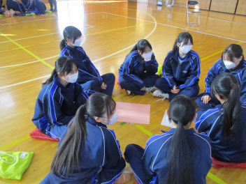 白井助産院の方を講師に招き、性感染症を中心に命の大切さについて授業を行いました。先生方に役割演技で妊娠した時の対応を演じてもらいました。その後、グループに分かれてそのような状況のときどのように行動するかについて話し合いました。話し合うことで、どのように行動すればよいか理解を深めていました。