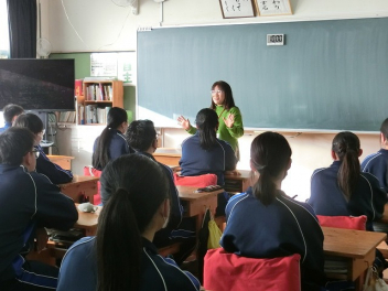 • 1年生が国指定重要無形民俗文化財である「懐山(ふつやま)おくない」の体験学習を行いました。当日は懐山地区の皆様や保存会の皆様にお越しいただき、「両剣(りょうけん)の舞」や「三ツ舞」、そして笛の演奏をご指導いただきました。現代のダンスとはリズムも動きも全く異なる独特の舞に、生徒たちは当初戸惑いながらも、保存会の方々の熱心な教えを受けながら一生懸命に体を動かしていました。