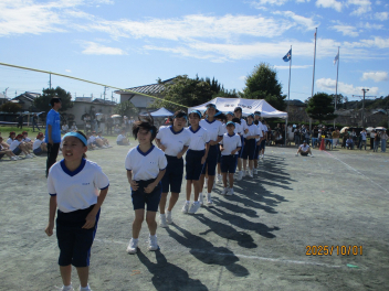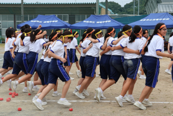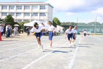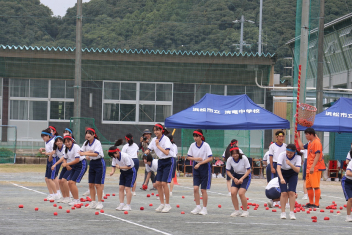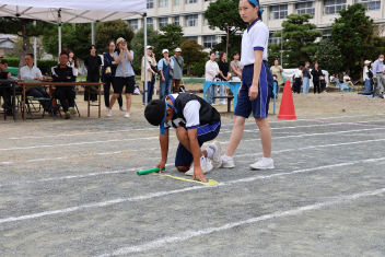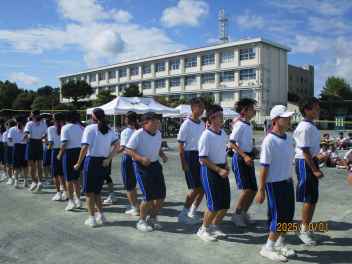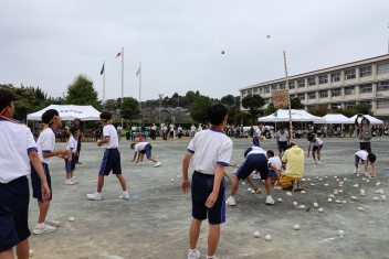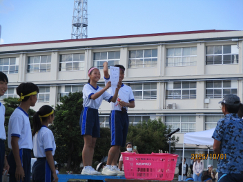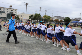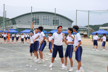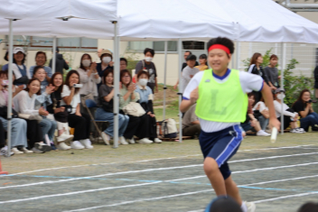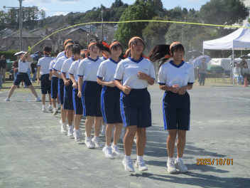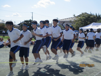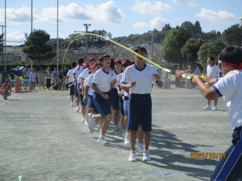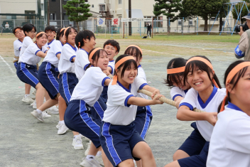 • 体育大会の午前の部が徒競走を皮切りにスタートしました。学級の声援を受け、どの生徒も全力で走っていました。生徒会種目のダンシング玉入れも学年ごとに曲に合わせて踊っていてとても楽しい気持ちになりました。午前最後の種目綱引きでは、力強い引き合いで、見ているほうも力が入りました。